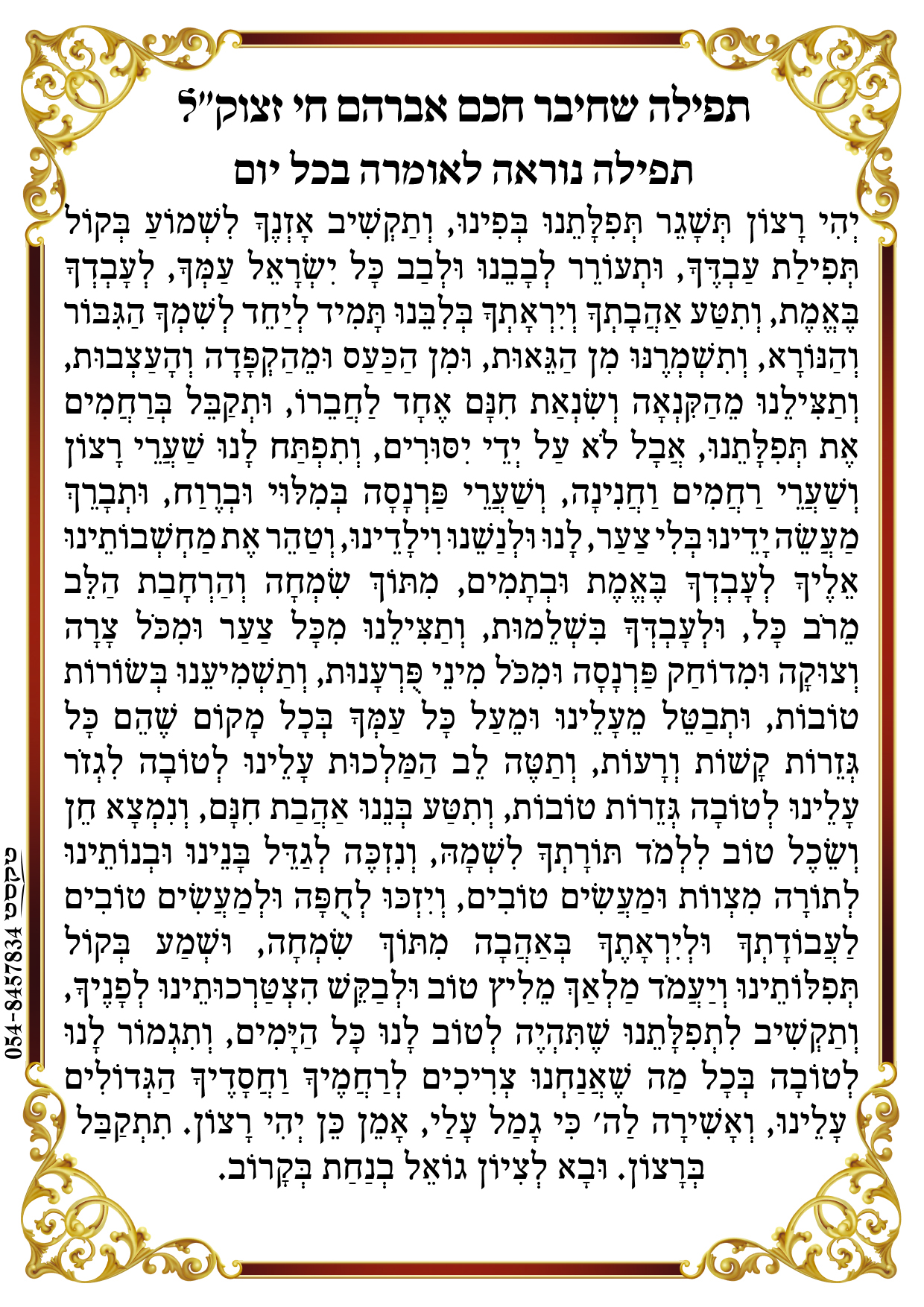 הנני מוסר מודעה שהחלטתי להתפלל בלי נדר בכל יום על כל אלה שיעינו בספר ויגידו בשמי דברי תורה לאחרים, שיוושעו מכל צרה שצריכים ישועה בעולם הזה ובעולם הבא
